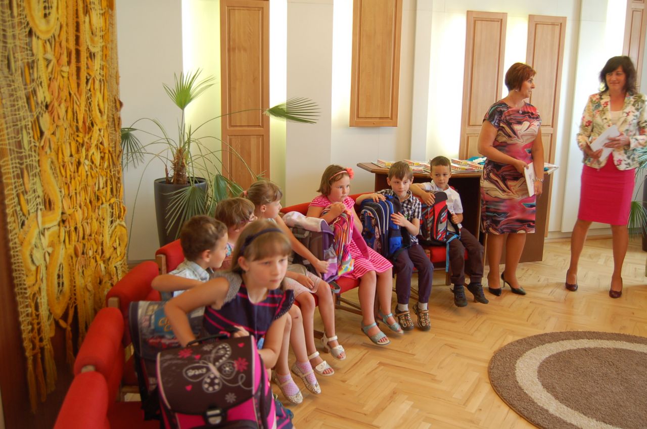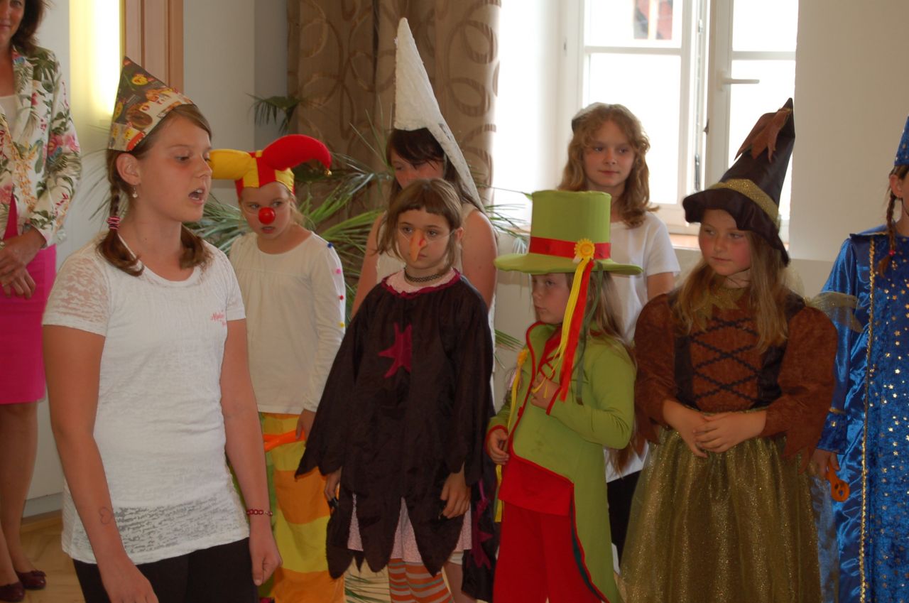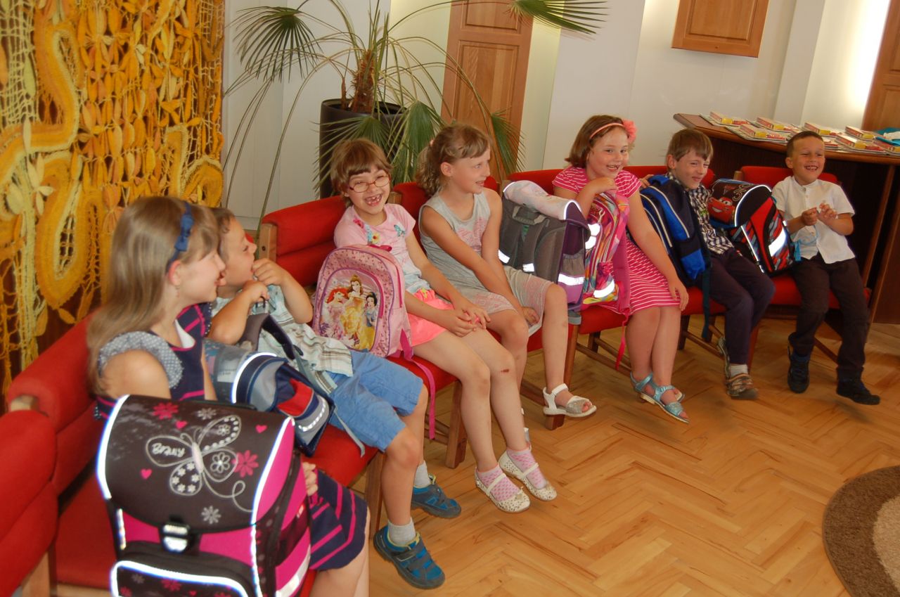 Poté již následovalo slavnostní povýšení šerpou na prvňáčka z rukou starostky, předání "vysvědčení" z mateřské školy vedoucí učitelkou Mgr. Věrou Máchovou a dárek od matrikářky. Přejeme našim budoucím žákům 1. třídy, aby se jim ve škole líbilo.