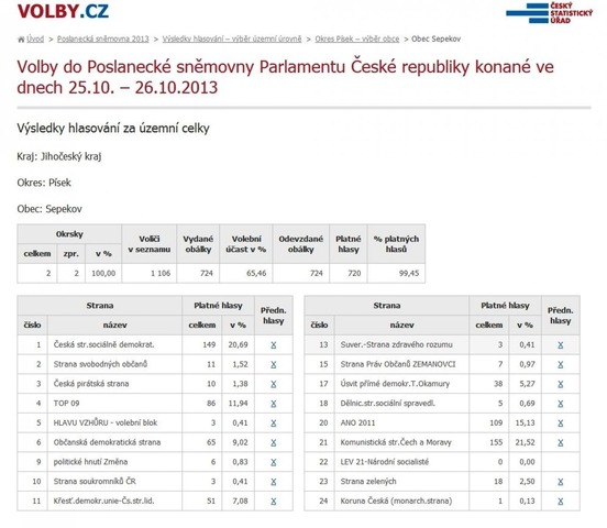 Výsledky hlasování ve volbách do Poslanecké sněmovny Parlamentu ČR ve volebním obvodu Sepekov