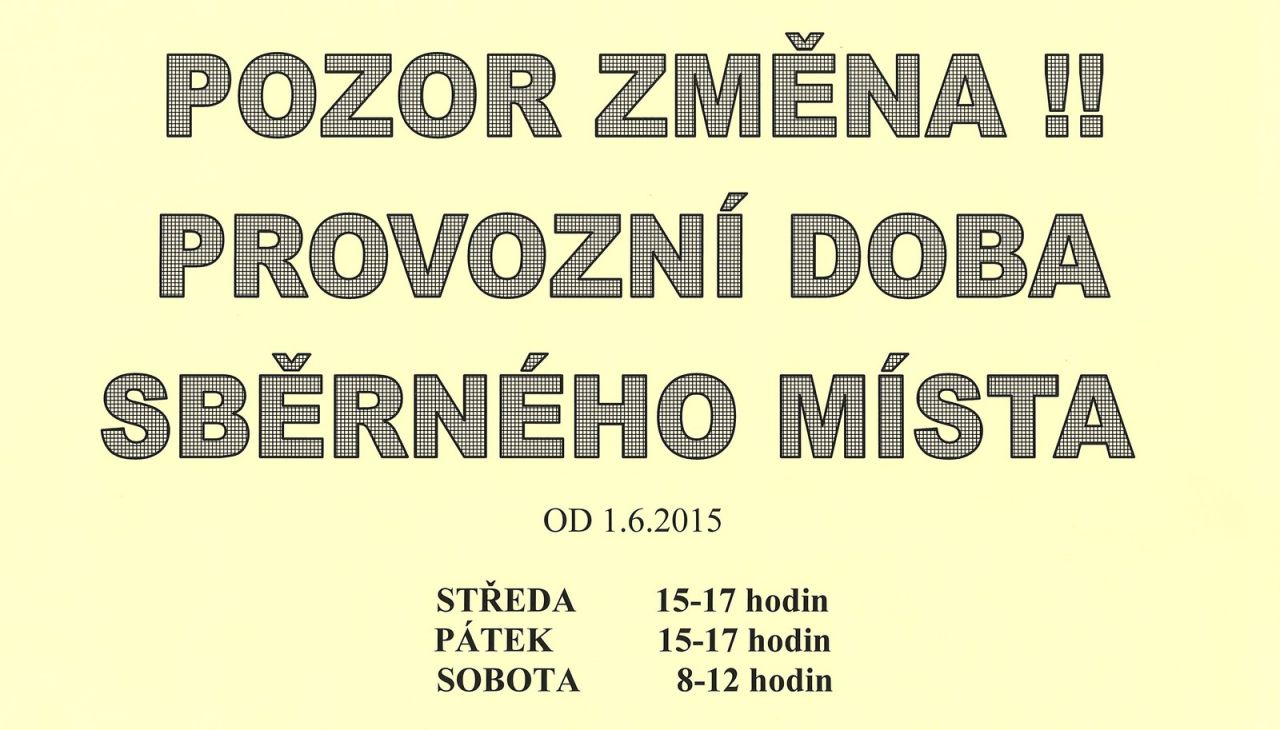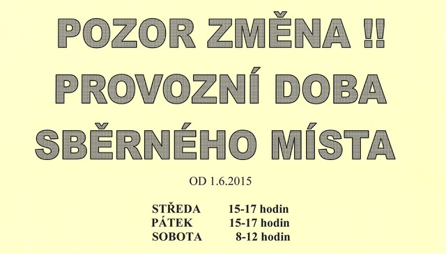 Od 1.6.2015 dochází na základě požadavků občanů ke změně provozní doby sběrmého místa v Sepekově.