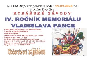 MO ČRS Sepekov pořádá v neděli 1. října na rybníku Dvorčice RYBÁŘSKÉ ZÁVODY, III. ročník memoriálu Vladislava Pance.