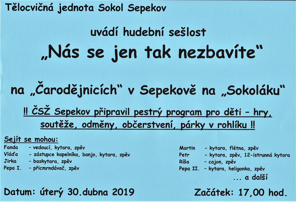Tělocvičná jednota Sokol Sepekov a Český svaz žen Sepekov pořádají "Čarodějnice na Sokoláku".