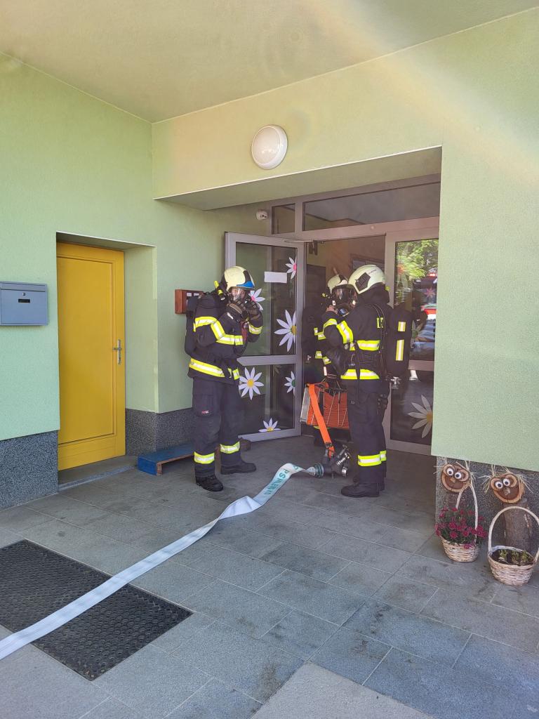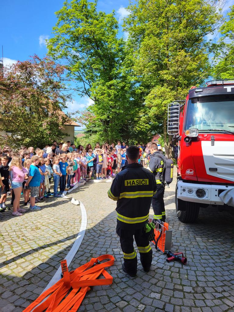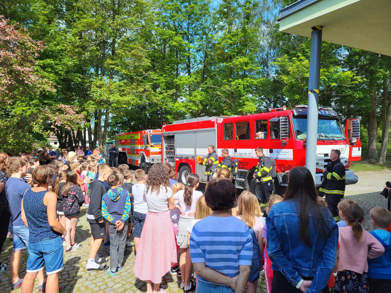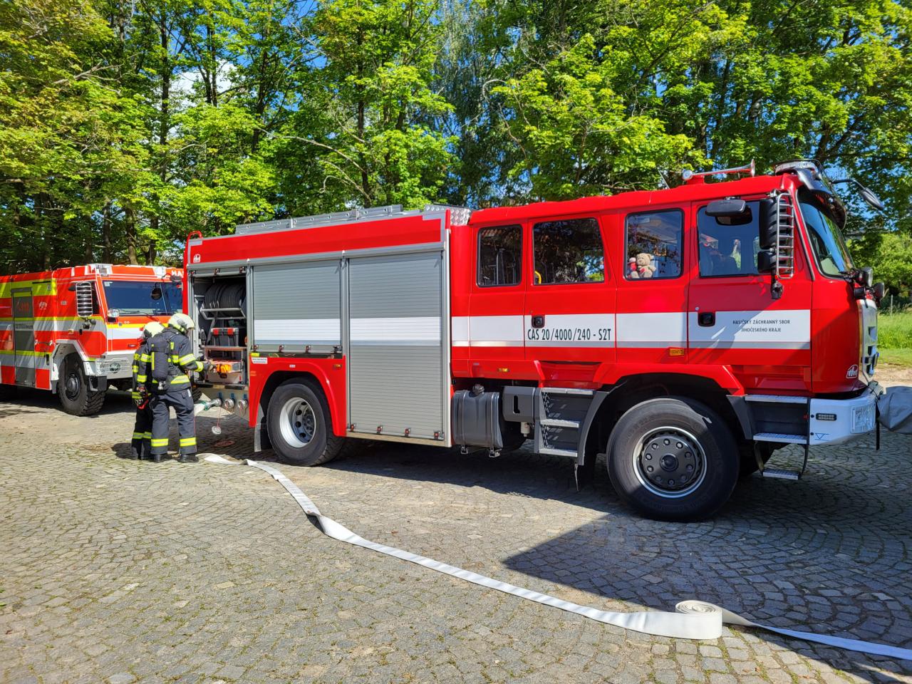 V rámci cvičení byla dětem představena technika HZS, s kterou milevská jednotka vyjíždí do podobných situací.