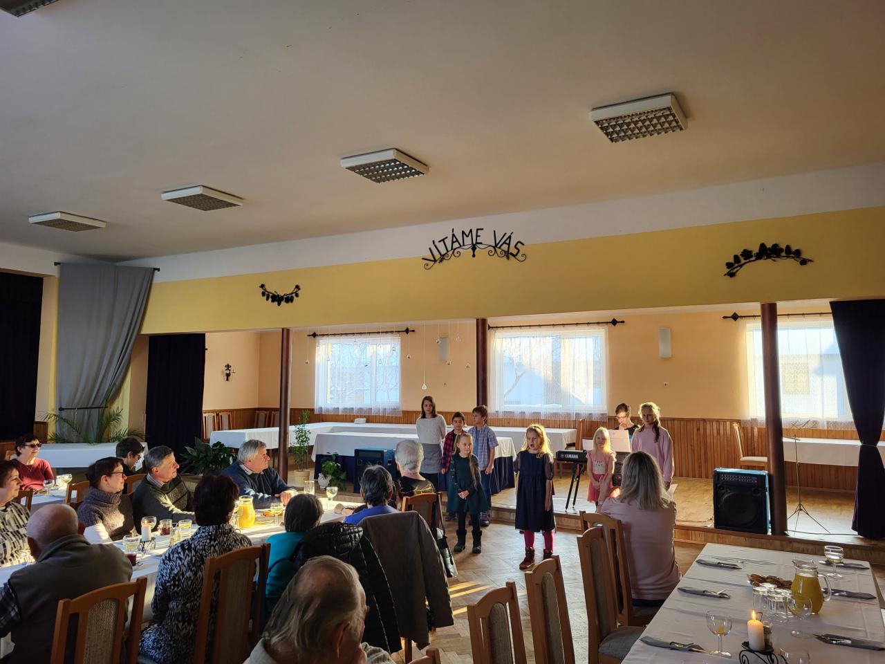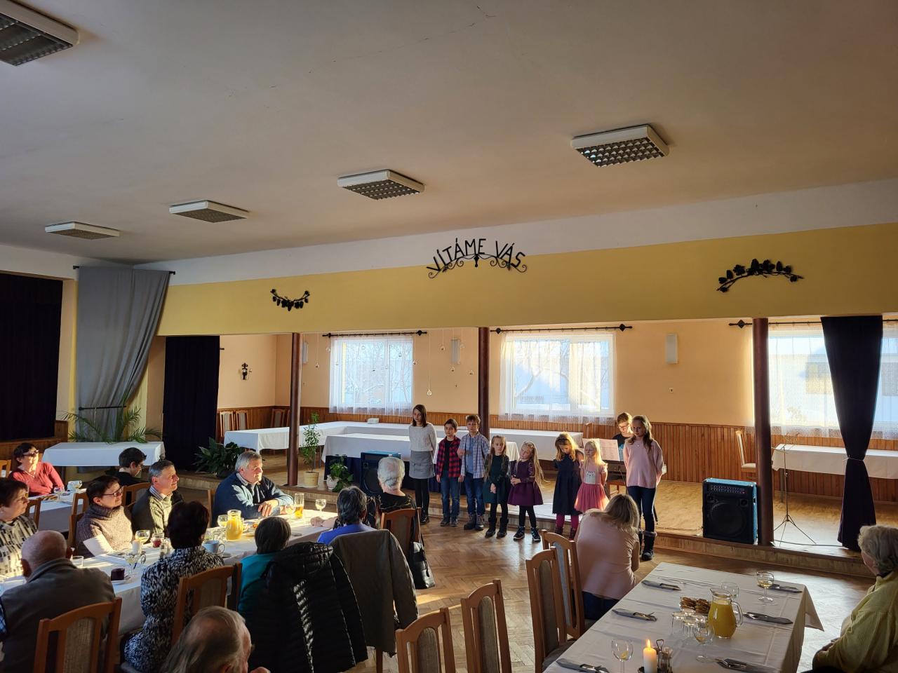 Poté následovalo vystoupení dětí z Líšnice, kteří si pro důchodce připravily vánoční básničky a písničky. Následovalo pohoštění a volná zábava.